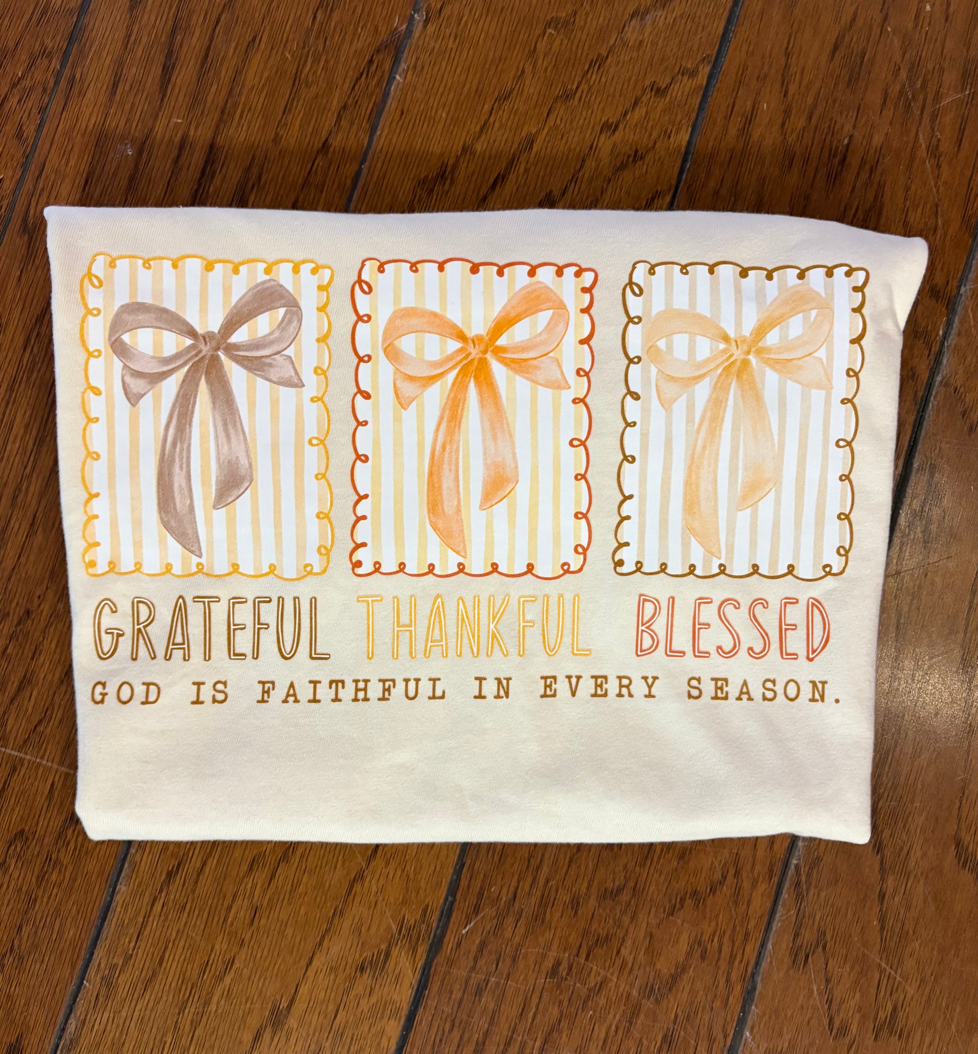 Comfort color T-shirt in the color Sand with Grateful, Thankful, Blessed message