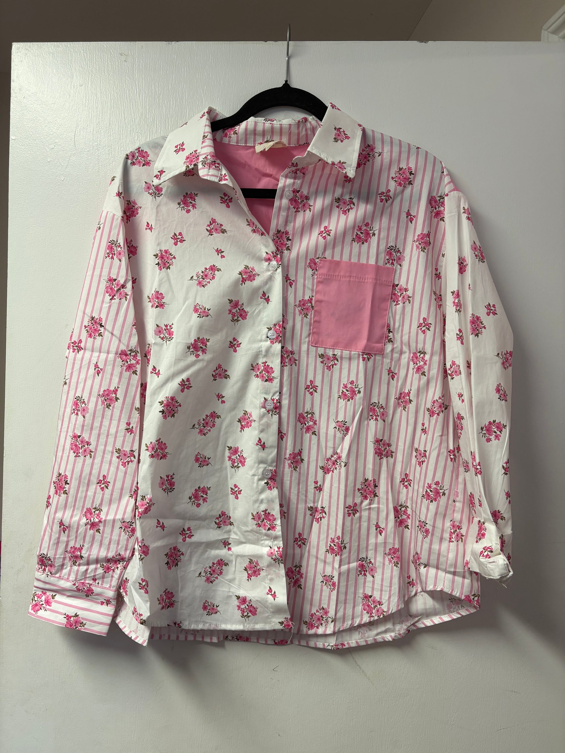 Button down mixed pattern floral top. Loose in fit.