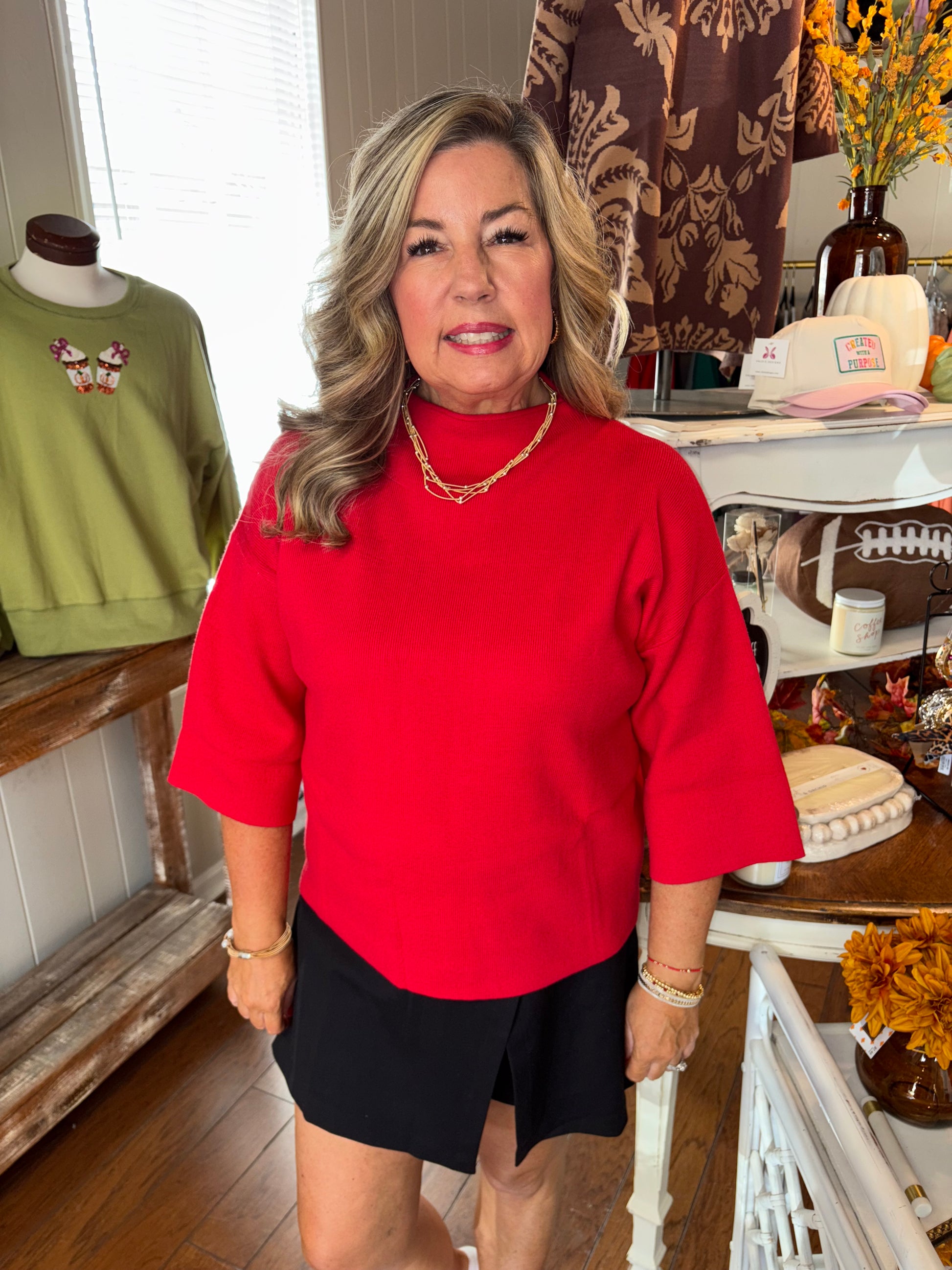 Medium weight, 3/4 sleeve sweater. Super soft blend viscose, polyester, and nylon.