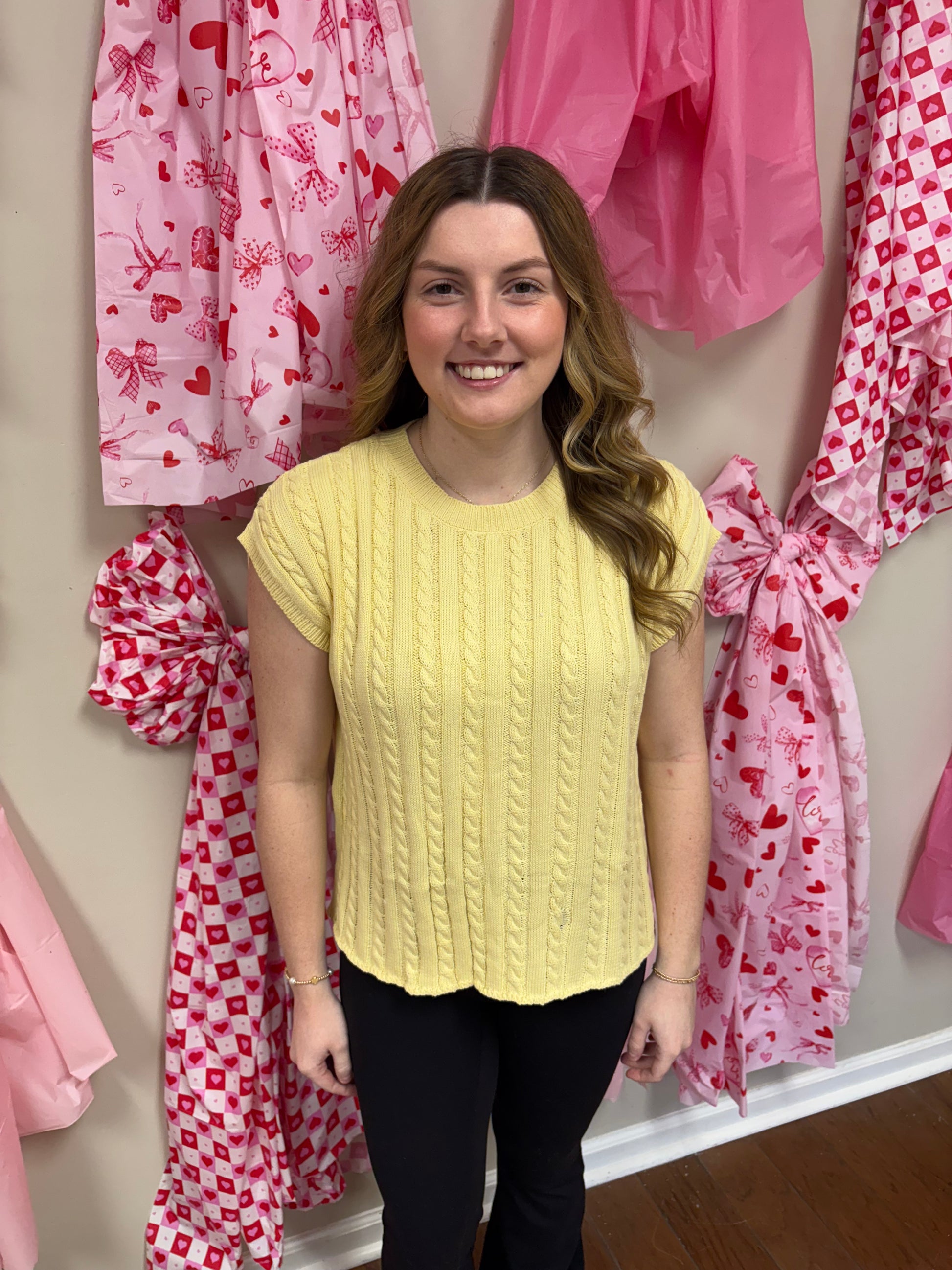 Sunny Spring Cable Knit Short Sleeve Sweater