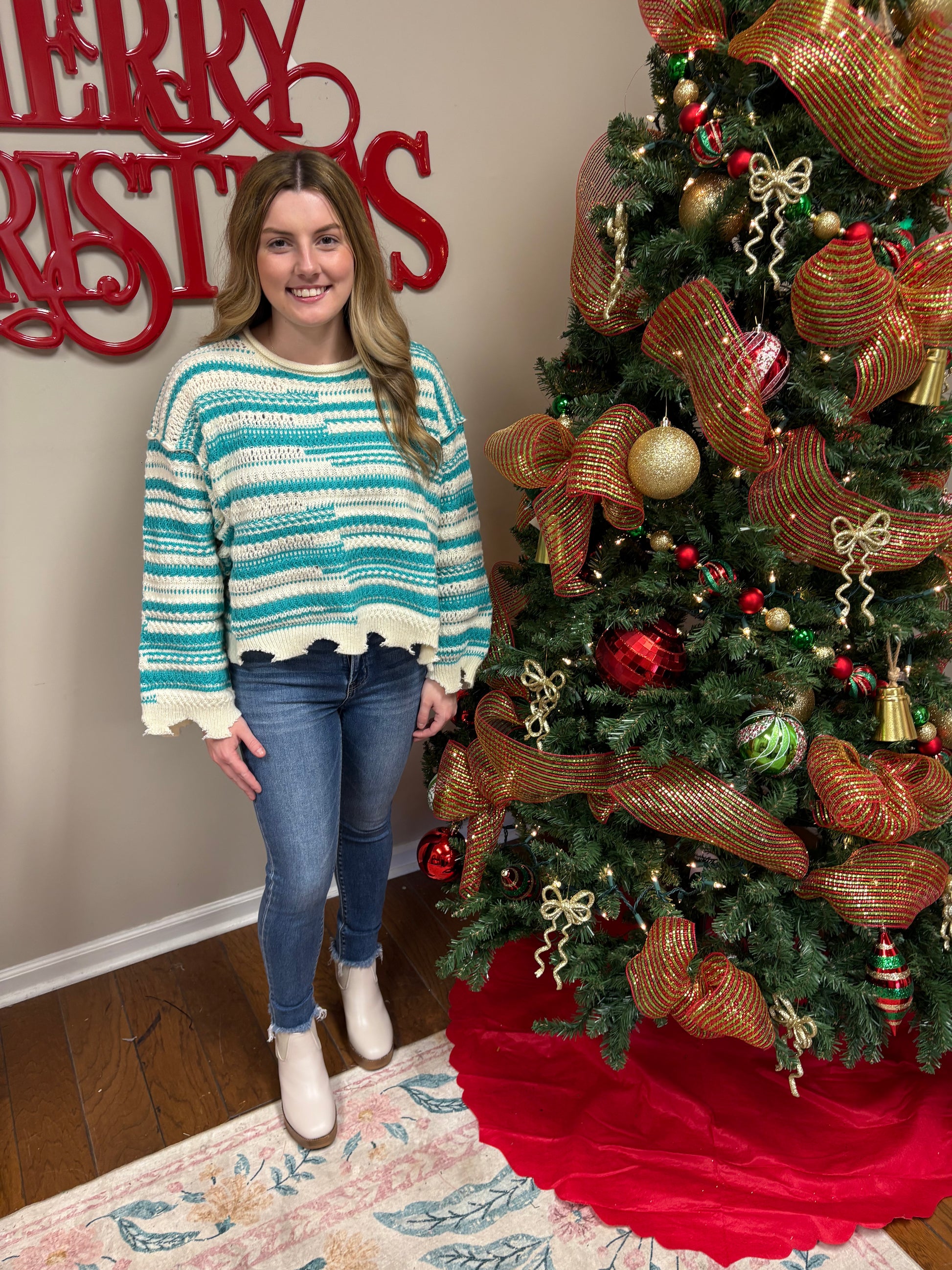 Mixed Stripe Raw Edge Sweater